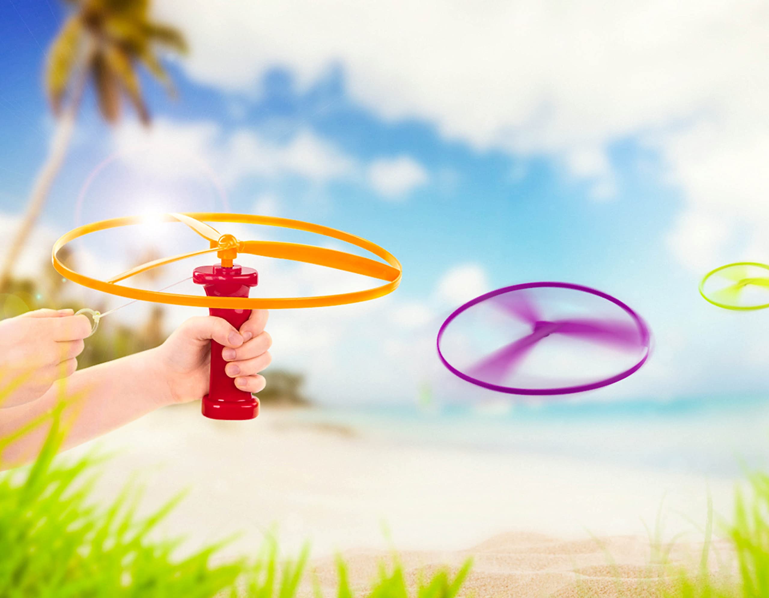 - Bereit zum Abheben: Der Skyrocopter ist so einfach zu bedienen — einfach an der Schnur des Abschussgeräts ziehen und den fliegenden Disc beim Fliegen beobachten!